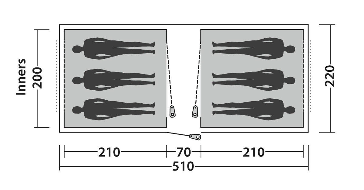 Crew 600 är ett rymligt festival-basecamp som är skapat för grupper som vill ha både gemensam yta och möjlighet till avskildhet. Vis-à-vis-layouten ger extra integritet i sovutrymmena, medan det stora centrala gemensamma utrymmet är perfekt för väskor, utrustning och social samvaro. Stora sidoventiler förbättrar luftcirkulationen, och två innertält håller sovutrymmena organiserade. Med Dark&Chill™-teknik som håller tältet svalare under dagen och mörkare på natten är Crew 600 den perfekta basen för långa festivaldagar och avslappnade stunder tillsammans.